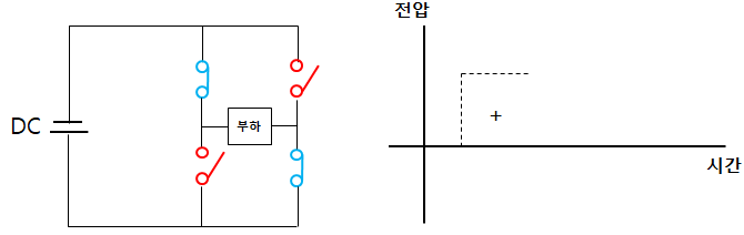 1. 파란색 스위치를 닫고 빨간색 스위치를 열면 부하에 +값의 전압이 걸린다.