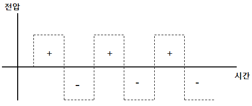 3. 이 과정을 반복해주면 +,- 값이 왔다갔다하는 교류 구형파가 만들어진다.