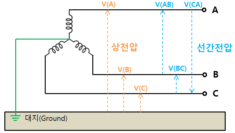 접지가 아닌, 선끼리의 상대적 전압을 측정하고 있으므로 '전위차'라고 할 수 있다.