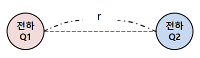 두 전하가 존재하면 둘 사이에는 전기적인 힘(전기력)이 생성된다.