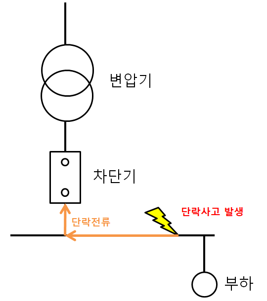 그래서 변압기 앞단에는 단락전류를 막아줄 수 있도록 차단기가 설치되어 있다.
