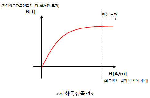 앞에서 공부했던 철심의 자화특성곡선을 다시 복습해보자.