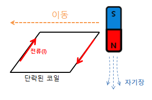 여기서 생성된 단락 된 코일을 따라 정해진 방향으로 흐르는 전류를 '유도전류'라고 한다.