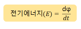 -> 시간(t)에 따라 자기장(φ)이 변화하면 전기에너지(E)가 만들어진다. 즉 전류가 흐른다.