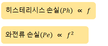 와전류 손실(Pe)는 주파수의 제곱(f^2)에 비례한다.