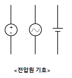 첫 번째 +,-가 있는 전압원은 임의의 전압원이다. 교류, 직류를 통틀어서 사용한다.