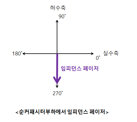 임피던스(Z) 페이저 =전압페이저 / 전류페이저 = V∠0˚ / I∠90˚ = Z∠-90˚ = -jZ