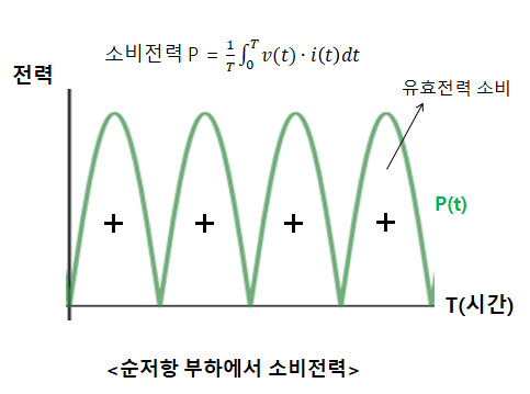 순저항 부하에서는 소비전력이 모두 양수로 받은 전력을 모두 소비했다면