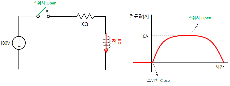 전류가 흐르던 회로의 스위치를 Open해도 마찬가지다.