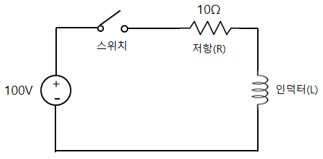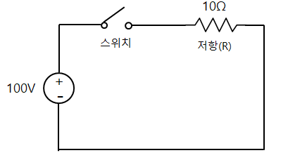 오옴의 법칙에 따라 (100V / 10옴 = 10A) 10A의 전류가 회로에 흐르게 된다.