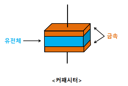 커패시터는 금속판 사이에 유전체가 채워진 형태로 되어있다.