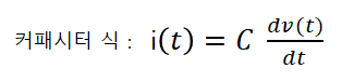 커패시터 식 : i(t) = C · (dv(t)/dt) - 시간에 따라 전압이 변화하면 전류가 생성된다. 전압 변화율이 클수록 큰 전류가 흐른다.