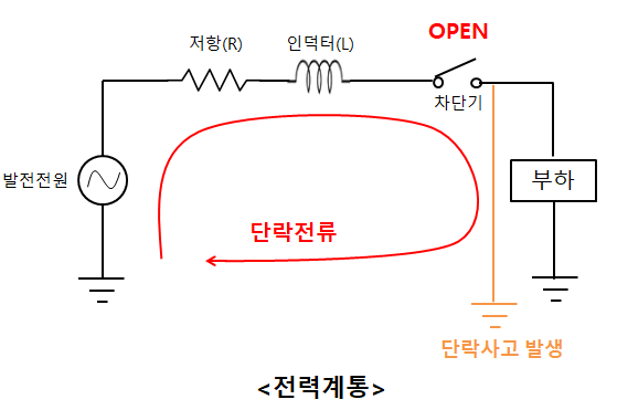 CLOSE 되어 있던 차단기는 단락전류로부터 전력계통 손상을 막기 위해서 OPEN 된다.