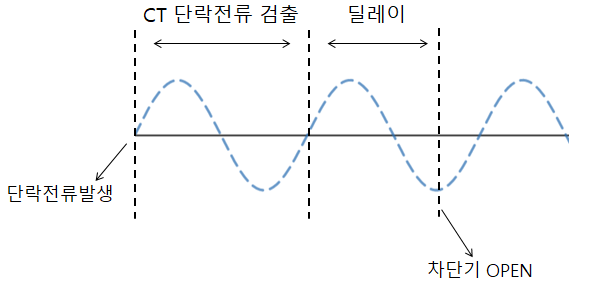 그 후 계전기, 릴레이, 트립코일 여자 등을 거치면서 전기, 기계적 딜레이가 발생한다.
