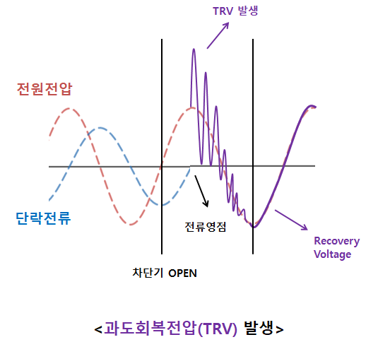 이때 전류가 영점이 되고 아크(Arc)가 없어지는 순간 과도회복전압(TRV)가 발생한다.