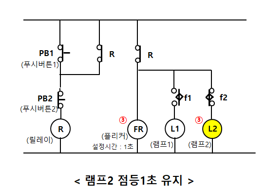 ②-2 릴레이가 여자되면서 이 쪽 릴레이 접점도 닫힌다.