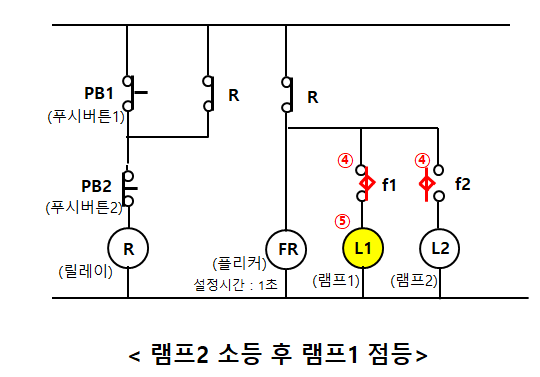 ⑤ 그러면 램프2는 소등되고 램프1이 점등된다.