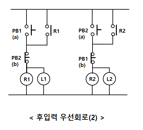 ○ 두 번째 '후입력 우선회로'(동시동작 불가능 회로)