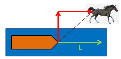 말이 앞쪽으로 움직임에 따라 빨간 화살표 방향으로 힘이 생긴다.
