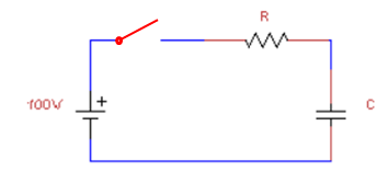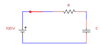 스위치를 ON시키게 되면 전압이 걸리게 되는데 이때 전압은 한 번에 100V가 되는 게 아니라 서서히 올라가다가 어느 정도 시간 후에 100V에 도달하게 된다. C값이 커지면 커질수록 100V까지 도달하는 시간이 길어진다. (이때, 100V까지 도달하는 시간을 시정수(τ)라고 하고 시정수(τ) = R x C로 표현 가능하다.)