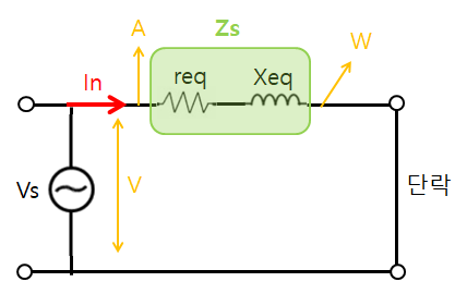 옴의 법칙에 의해 Zs = Zeq = 단락전압(Vs) / 정격전류(In)
