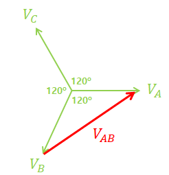1차측의 상전압 V(A),V(B),V(C)은 발전기에서 들어오는 전압으로 발전기에서 만들어진 3상 교류전류는 120º 위상차이를 가지므로 페이저도에서 120º 간격의 화살표로 표현할 수 있다. 이 때 선간전압은 각화살표의 끝을 이으면 표현할 수 있다. 선간전압 V(AB)는 상전압 V(A)와 V(B) 화살표 끝을 이으면 표현가능하다.