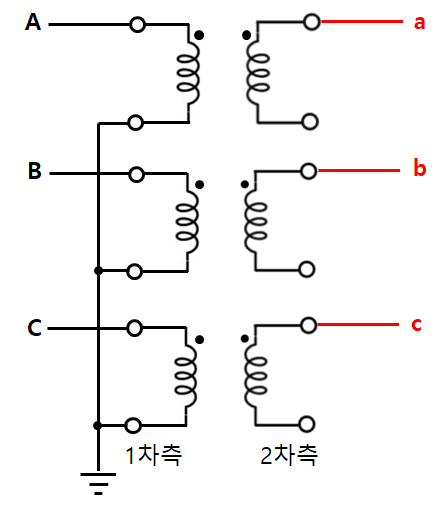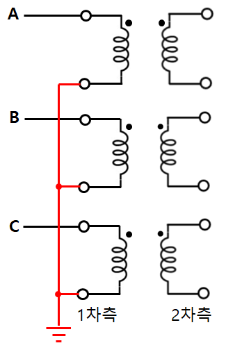 변압기 1차측을 Y결선하기 위해서 A,B,C 상을 빼낸다.