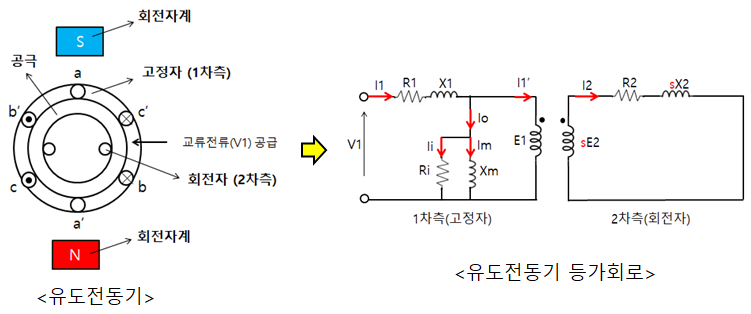 유도전동기를 등가회로로 표현하면 위와 같다.