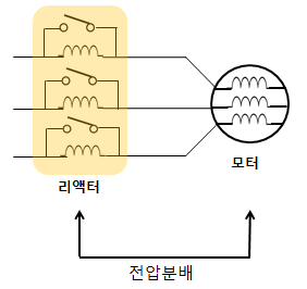 앞단에 놓은 리액터 값에 따라서 전압값을 조정하면 기동전류와 기동토크 값을 변화시킬 수 있다.
